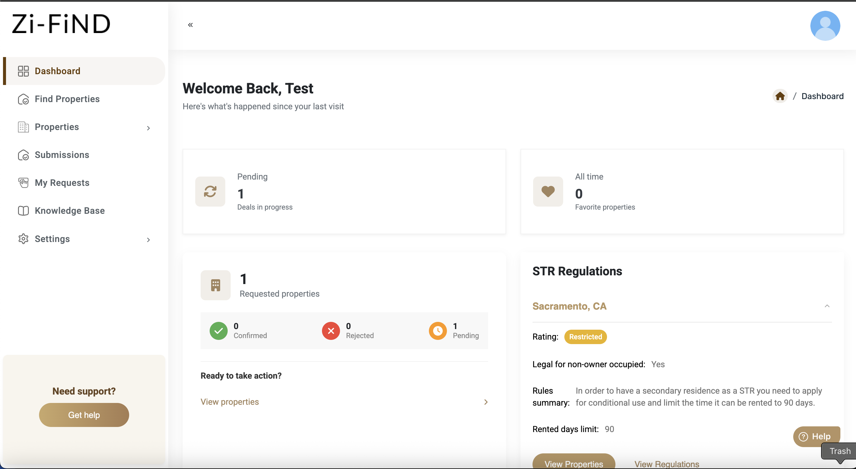 STR Regulations are displayed automatically on your Dashboard based on the cities you've added to your search criteria. You do not search for regulations separately — they appear once your criteria includes specific cities.